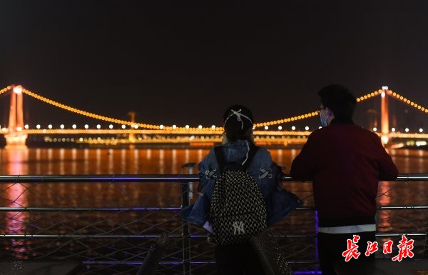 长江网4月25日讯 2020年4月25日,停航95天的武汉两江游览游船正式复航。19:20,随着一声汽笛响起,“东湖号”从粤汉码头发班。 (记者许魏巍 摄影报道)