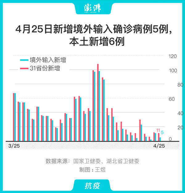 黑龙江新增1例 4月25日新冠肺炎新增5例境外