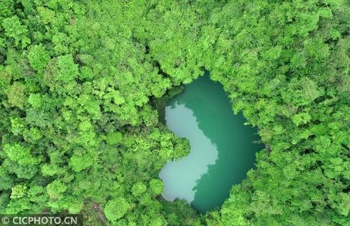 在张家界岩河风景区内,有这样一面心形湖泊,当地人称它“天使之泪”。湖的四周峭壁环绕,属于喀斯特地貌。由于地形险峻,这里很少有人踏足,一直保持着原始生态面貌。