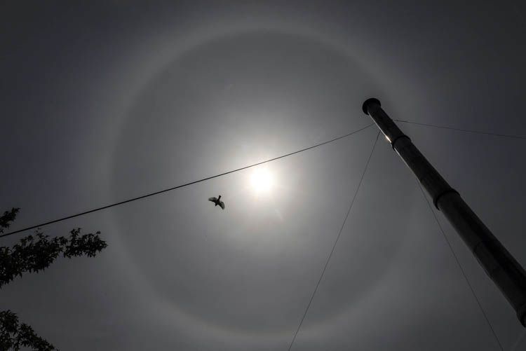 4月18日中午,北京,日晕在太阳周围出现一圈光环。
