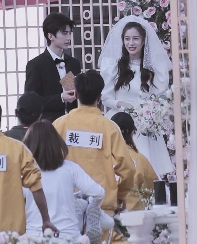 重点是,还有关晓彤穿“婚纱”的路透,手拿捧花的关晓彤,头戴白纱,红唇美肌,美丽极了,站在蔡徐坤身后特别乖巧的样子,而蔡徐坤一身黑色西装,打着领结,风度翩翩,这画面太惊喜了,这是什么剧情呢?