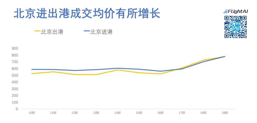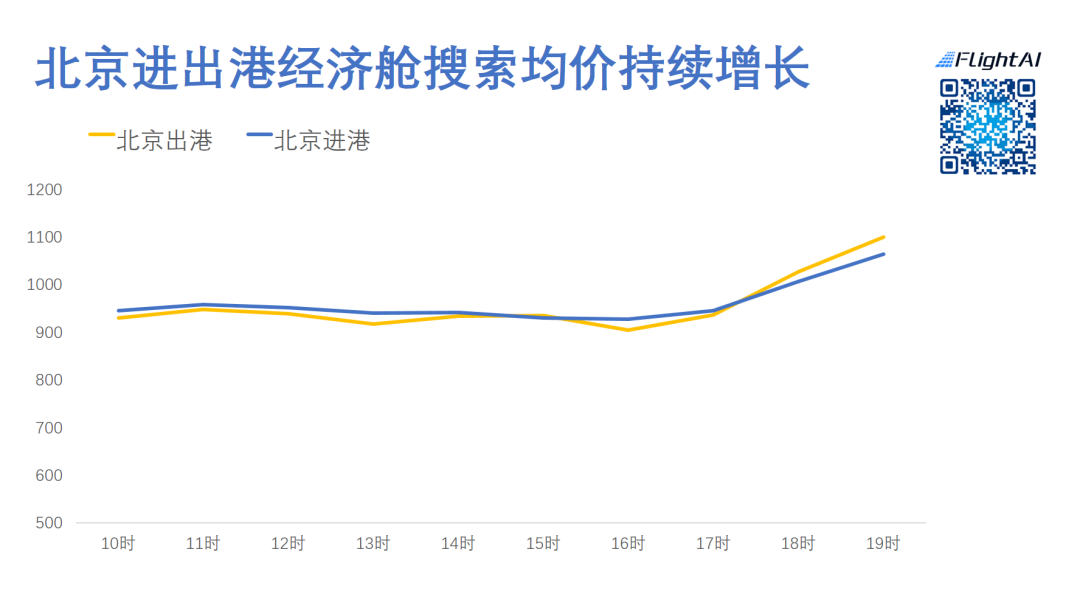 从搜索均价来看,北京进出港的经济舱单程均价持续有所上扬。北京出港的价格相对上涨更明显。