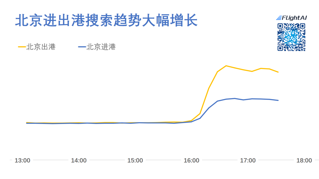 消息公布后,北京进出港的搜索需求均大幅增长,其中