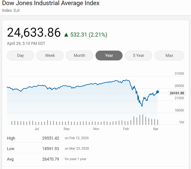 就在法奇博士向记者们宣布了这一好消息,称之为“非常显著的结果(highly significant)”的话音未落,喜讯也快速传染了华尔街,今天的股市道琼斯指数上涨500多点,目前美股距离2月2日的最高点只跌了16%,在美国3000多万人的失业数据和第一季度GDP下降4.8%的现实面前,这个数字也是疫情下的奇景了。