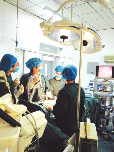 马启敏(左二)在手术室(图片来源:河南日报)