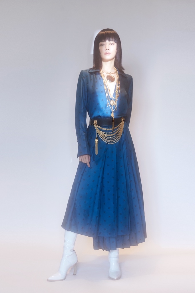 近日,由董润年执导的电影《被光抓走的人》在北京民生现代美术馆举行了一场名为“爱情验证”的主题展览发布会。谭卓一身蓝色印花长裙搭配白色长靴亮相现场,用经典的色调勾勒出优雅的质感。黑色的及肩短发和金色项链的搭配为整体造型增加了更多异域风情。在现场,黄渤说到:”一进休息室看见自己的太太从张燕变成了’埃及艳后’。”谭卓和黄渤两位自带幽默细胞的人在现场互相调侃,引得现场欢笑不断。