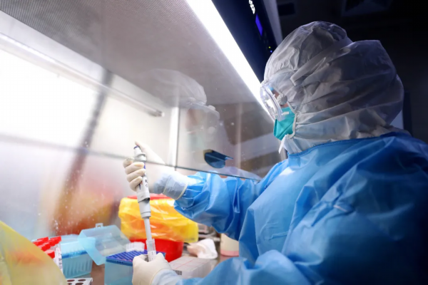 陈柯霖:2月10号第1次做的时候,肯定当时面对第1例样本的时候会害怕,也会紧张,因为和平时的临床工作完全是不一样的。面对这种高致病性的这种病原体检测的时候,我们就是需要三级防护,防护服、护目镜、口罩、帽子全要武装好,然后才能进行操作。