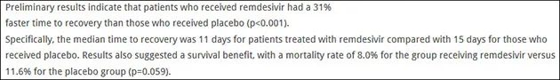 结果初步却显示瑞德西韦治疗重症患者未见显著临床改善。
