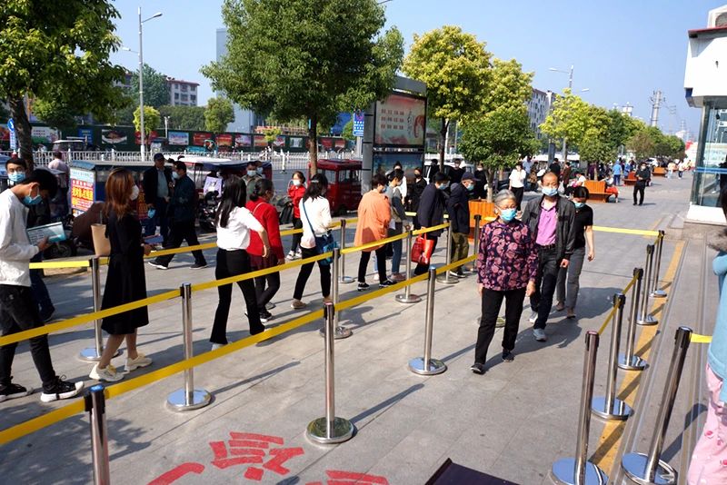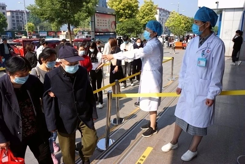 “请大家不要离的太近,间隔一定的距离,排队通过医院的测温仪……”5月1日上午刚过8点,在驻马店市中心医院门诊的患者就诊通道门前,正在检查患者就诊情况的医院带班领导正与医务人员一起维持患者就诊秩序。