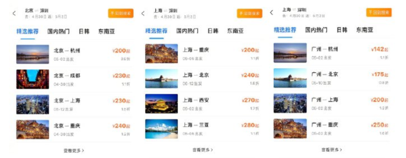 但从全国热门城市来看,尚未出现水涨船高的报复性涨价。这波提价更多地还是在呼应北京消费者出行热情,其他热门城市涨幅不明显,仍有大量低价票。