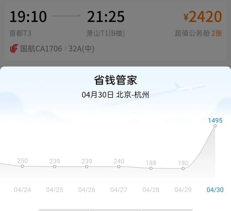 爆款法则本着求知的心态,去看了看飞机票价,确实有部分城市间航线,如北京到杭州价格升高到2400元,涨幅高达七倍,但不少其他目的地低至三折的机票也依旧大量存在。