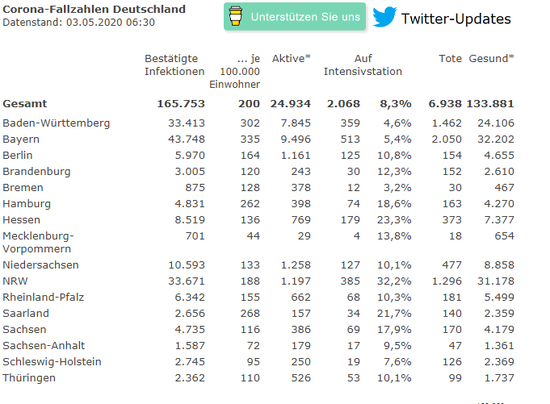 德国新增确诊病例781例,累计确诊165753例