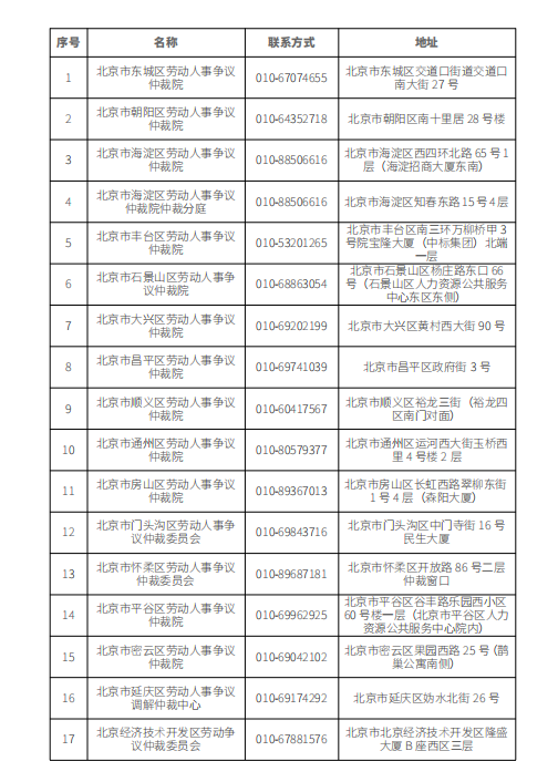 附:北京市各区劳动人事争议仲裁委员会联系方式