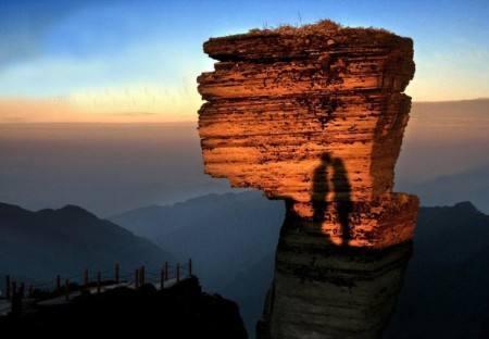 蘑菇石是梵净山一个重要的景点标志,它是十几亿年前从海底慢慢沉积,经过时间的打磨才造就了现在的模样,一块石头歪歪斜斜地压在一根石柱上,好像就要掉下来的样子。