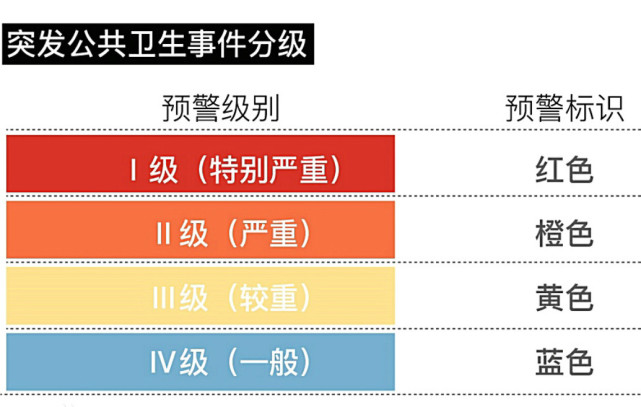 根据突发公共卫生事件性质、危害程度、涉及范围,突发公共卫生事件可划分为特别重大(Ⅰ级)、重大(Ⅱ级)、较大(Ⅲ级)和一般(Ⅳ级)四级。