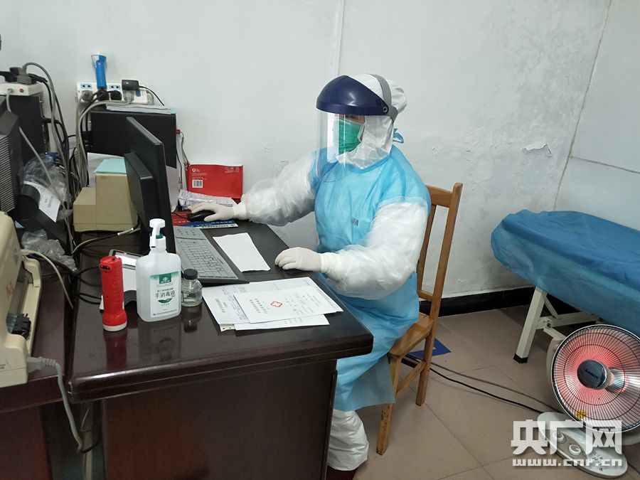 吴婷穿着防护服检查病历资料(央广网发 通讯员供图)