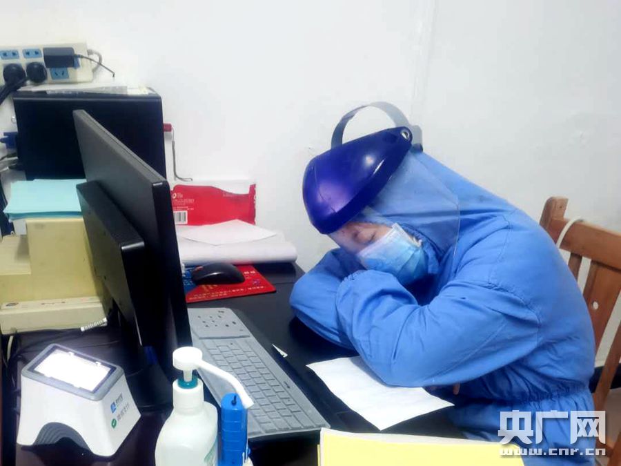疲惫的吴婷趴在桌上睡着了(央广网发 通讯员供图)