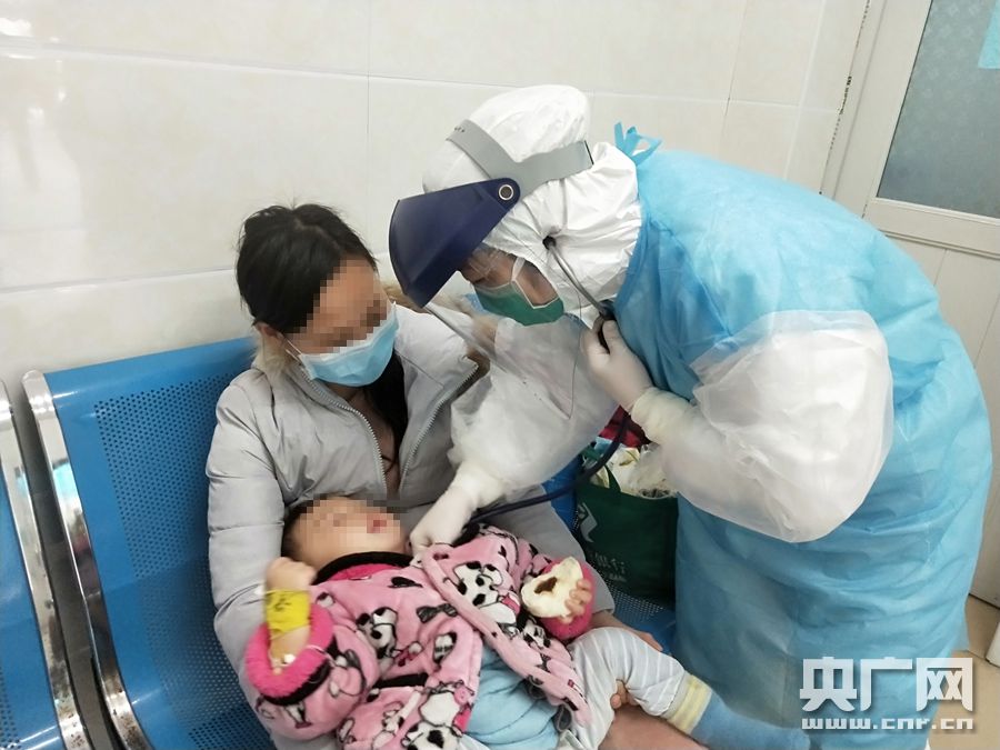 吴婷为发热的儿童诊治(央广网发 通讯员供图)