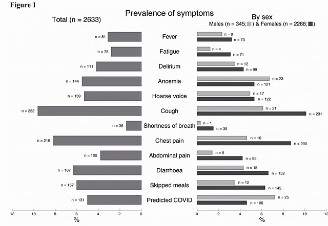 部分COVID-19症状,例如声音嘶哑、咳嗽、胸痛和腹痛等,这些都是