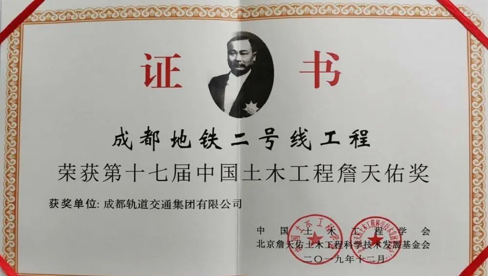 4月26日,记者从成都轨道集团获悉,近日,第十七届中国土木工程詹天佑奖评选结果揭晓,全国共有31项工程登榜,“成都地铁2号线工程”位列其中。