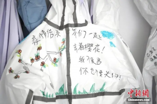 资料图:武汉市第六医院的护士陈思敏在防护服上画出樱花图案。中新社记者 安源 摄 今天是五一国际劳动节致敬每一位勇敢逆行者致敬每一位爱岗敬业的劳动者致敬每一位平凡而伟大的人!