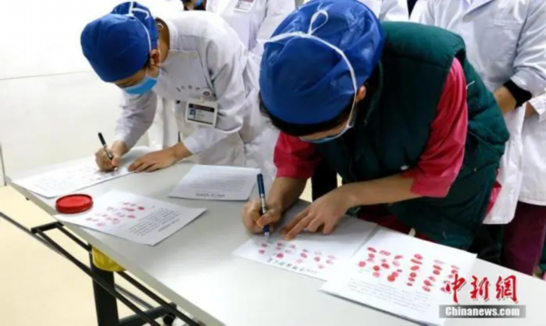 资料图:医疗队员在请战书上再次按下手印。4月14日,黑龙江省第一批支援武汉医疗队经过隔离休养14天,终于可以和家人团聚。他们再次请战支援黑龙江绥芬河。中新社记者 吕品 摄 平日里他们是同我们擦肩而过的普通人忙于各种琐碎的日常工作疫情中他们奋不顾身地冲在前面有一分热,发一分光用勤劳、善意和勇气撑起一座城市、一个国家的希望