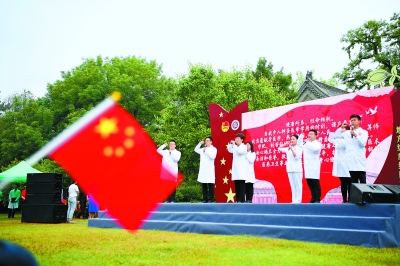我决心竭尽全力除人类之病痛,助健康之完美,维护医术的圣洁和荣誉,救死扶伤,不辞艰辛,执着追求,为祖国医药卫生事业的发展和人类身心健康奋斗终生。在乔杰带领下,年轻的医务工作者,举起右手,重温初心,践诺始终。
