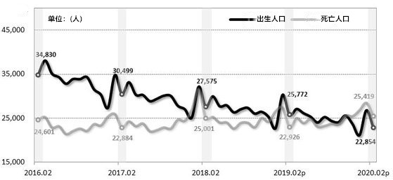 但今年的情况不同:1月份韩国总人口仍保持着自然减少的趋势,及至2月份,人口减少幅度甚至不降反升。