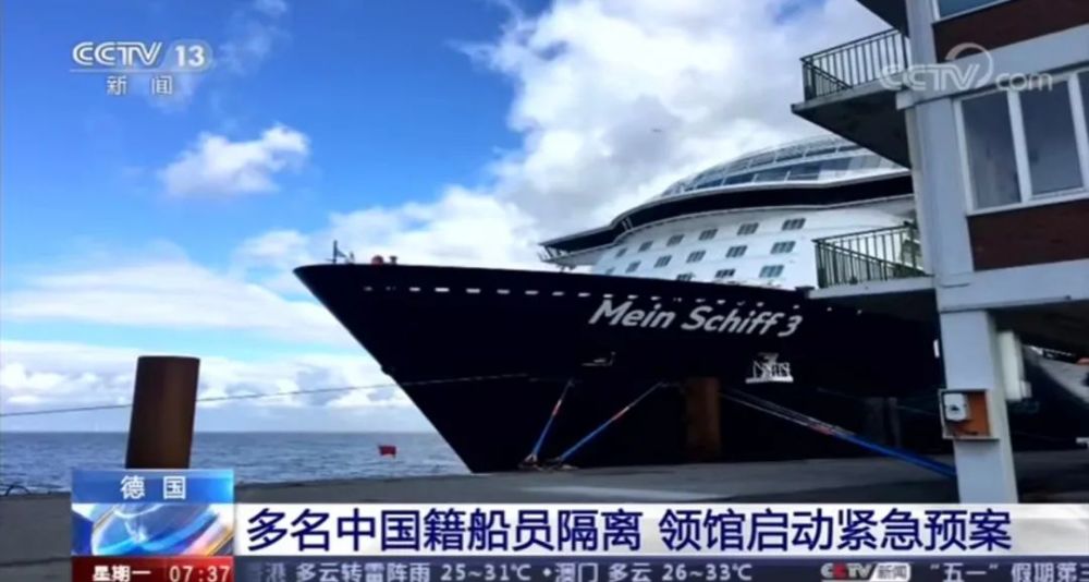 由于一名船员感染新冠病毒,4月28日起停靠在德国北部库克斯港的“迈希夫3号”邮轮采取全员隔离措施,其中中国籍船员58名。据了解,58名中国籍船员中两名有轻微症状,这两名船员第一轮新冠病毒检测结果为阴性。中国驻汉堡总领事杜晓晖介绍,“中国驻汉堡总领馆,会将这58名中国籍船员的事儿管到底。” (央视新闻)