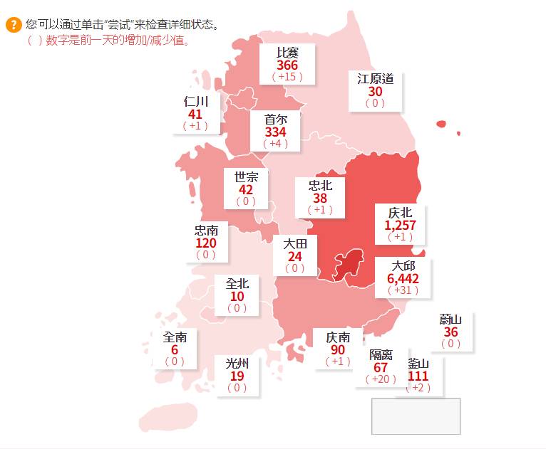 韩国各地区疫情分布