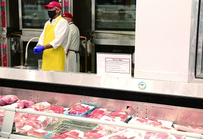 5月3日,美国旧金山湾区一家超市贴出每位会员限购三件肉类产品的提示。美国多家肉类加工厂近期因新冠肺炎疫情关闭,肉类供应受到影响。