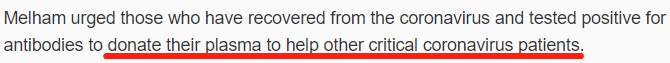梅勒姆本人则对当地媒体表示,他希望能够让更多的人进行病毒检测。另外,他还呼吁康复的新冠肺炎患者能够去捐献血浆,帮助其他患者。
