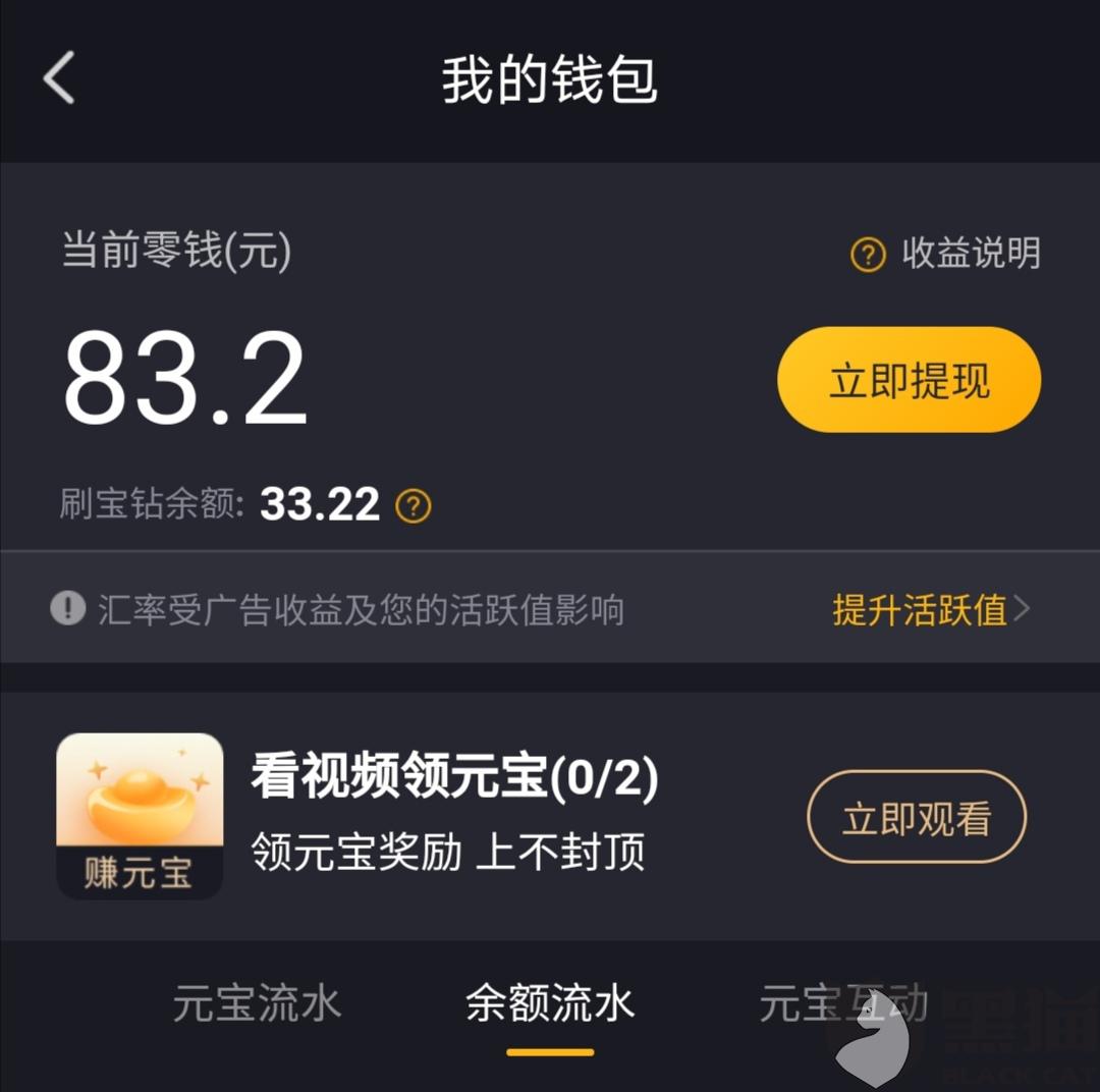 消费者“邓花秀202004”在5月5日向黑猫投诉平台再次反映:“本人强烈要求刷宝钻余额转换成零钱,可以提现,不要欺骗大家。”