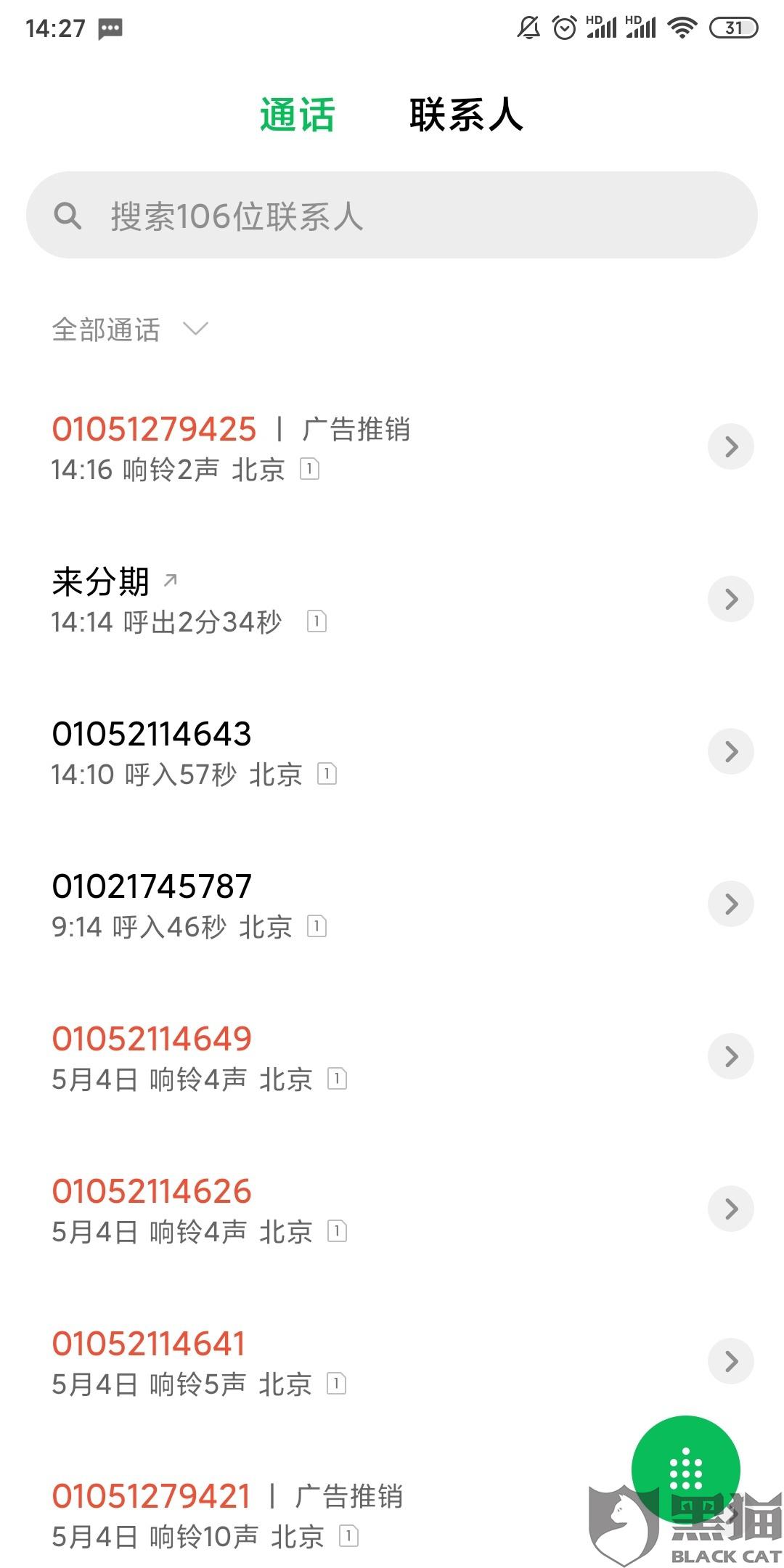 消费者“匿名”在5月5日向黑猫投诉平台反映:“一天十几个暴力催收电话。威胁我上门催收。叫我提前让家里人回避,还跟我说安排多少辆车的工作人员去我户籍所在地,停止骚扰电话!否则本金一份也别想”