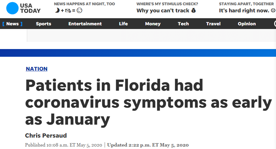 海外网5月6日消息,据美媒5日报道,美国佛罗里达州的一批新冠肺炎患者早在今年1月就出现了相关症状,这比该州官方报告的首例新冠肺炎确诊病例出现时间提前了两个月。