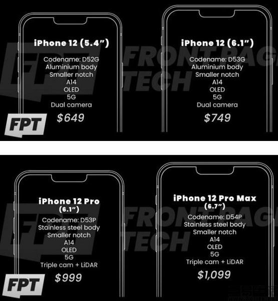 至于消费者更为关心的售价方面,据悉iPhone 12的起售价为649美元,iPhone 12 Max则为749美元,iPhone 12 Pro将从999美元起跳,而旗舰产品iPhone 12 Pro Max的价格则可能会是1099美元。作为对比,iPhone 11目前的起售价为649美元,因此这也意味着新款机型将与其持平。