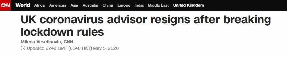 据美国有线电视新闻网(CNN)报道,当地时间5月5日,曾为英国政府提供新冠病毒应对建议的知名流行病学家尼尔・弗格森辞去了自己在政府中的职务。关于辞职的原因,英国《每日电讯报》报道称,他违反了自己参与制定的新冠疫情期间的隔离规定。