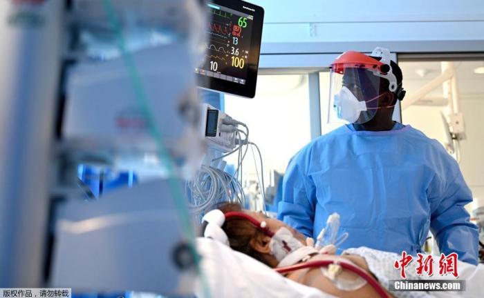 当地时间5月5日,英国政府公布新冠病毒死亡最新统计数据,英国死亡人数超过意大利,成为欧洲死亡人数最多的国家。图为英国剑桥皇家帕普沃斯医院重症监护室,一名穿戴防护设备的临床工作人员在护理新冠肺炎患者。