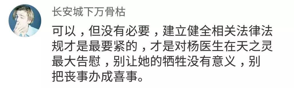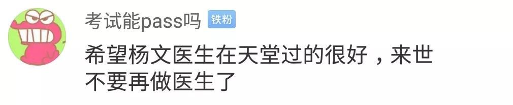 在众多网友评论中,有一网友说,“希望杨文医生在天堂过得很好,来世不要再做医生了”,这段评论也得到了很多医生的回复……