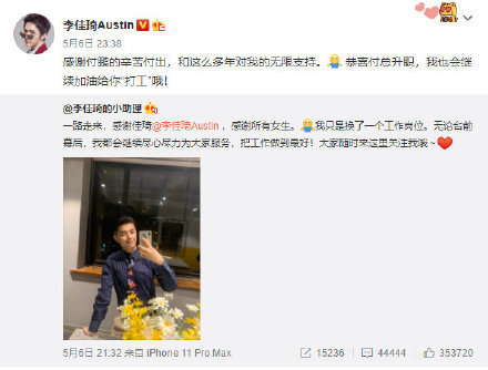我们都熟悉李佳琦。同样,李佳琦的小助手付鹏也很熟悉。据说他们认识很久了,他们私下是工作伙伴和亲密朋友。今天,付鹏辞去了李佳琦小助理,其实是他被提拔了,为此,李佳琦也为他高兴,从两人的微博内容都非常感激。