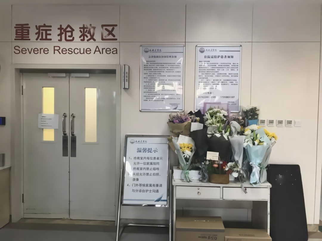 12月28日,《中国新闻周刊》记者来到位于北京市朝阳区的民航总医院急诊科,一进门就看到人们为悼念杨文而献上的一束束鲜花。现场观察显示,这家医院的安全警戒措施有所加强。