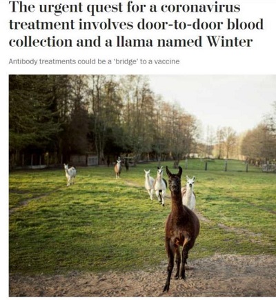 疫苗被认为是解决此次疫情的根本办法。5月5日,美国著名生物学期刊《细胞》公布新冠病毒“抗体疗法”的最新研究进展:一只名叫温特(Winter)的羊驼血液中产生了一种特殊的抗体,或成为对抗新冠病毒的关键。
