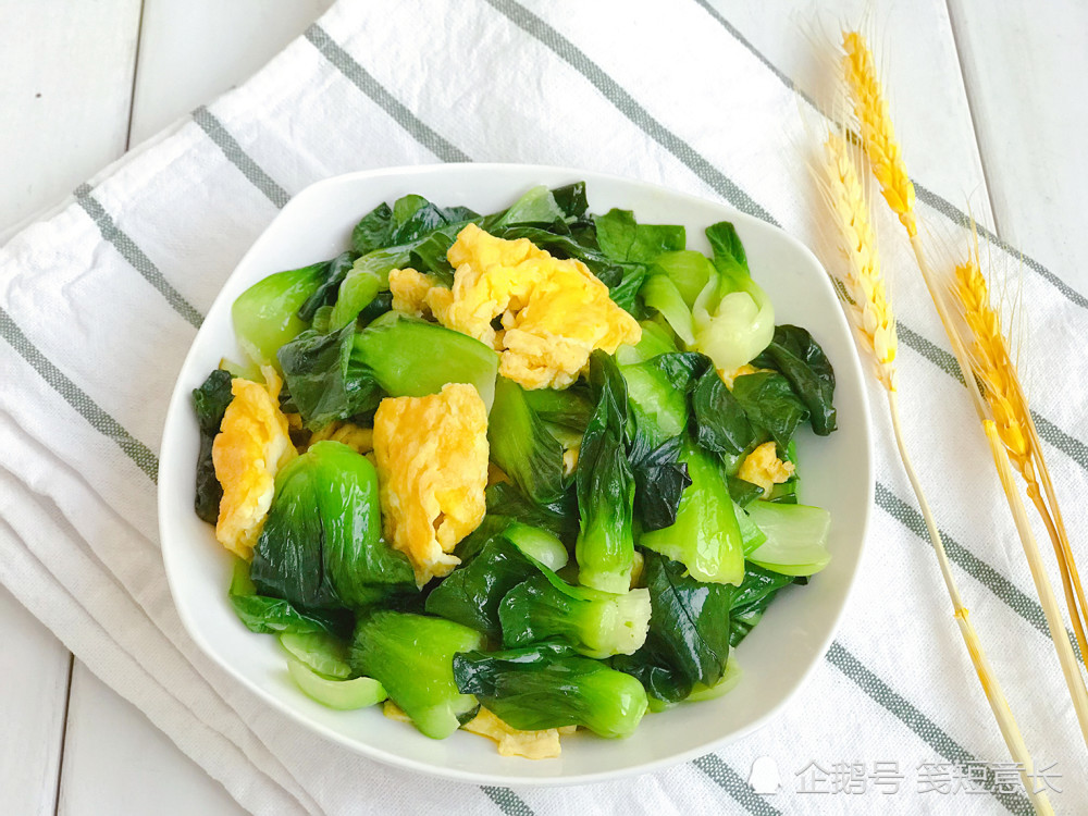 3. 油菜炒鸡蛋是非常简单的一道家常小菜,将油菜炒至变色不夹生就赶紧放入鸡蛋翻炒调味出锅,动作一定要快,不然油菜口感就变老不脆嫩了。