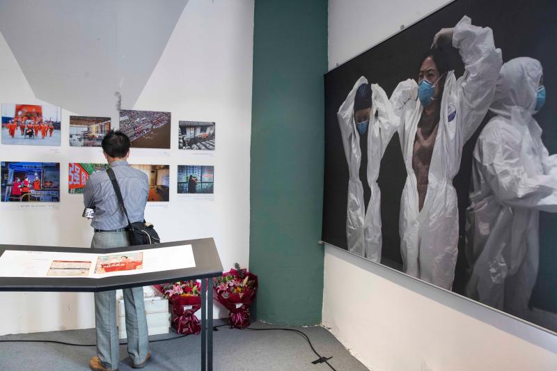 此次展出的抗疫期间的感人摄影画面,是从摄影人、媒体记者、一线医护工作者、广大志愿者创作的作品中精选出来的抗击疫情各阶段难忘的瞬间。