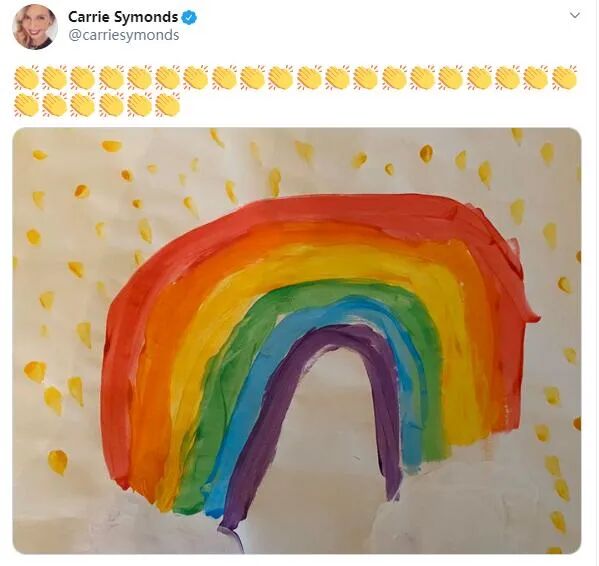 在得知约翰逊离开重症监护室的消息后,其正处于孕期的未婚妻凯丽西蒙兹,立即在社交媒体上发文祝贺。她一口气发了26个鼓掌的表情,并配上一幅彩虹画。