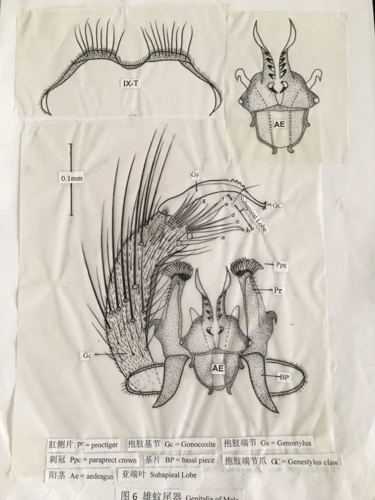 “画蚊子是一件很严谨的事情,不能图好玩。”董老说,做好蚊虫分类研究,画图是其中关键的一环。蚊虫尾器作为主要的鉴别特征,需要将其内部构造一一画出来。