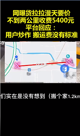 原文链接:货拉拉不到两公里收费5400,平台回应:用户炒作搬运费没有统一标准