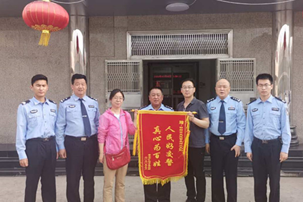 5月6日17时30分许,邯郸市峰峰矿区漆女士的家属将一面写有“人民好交警 真心为百姓”的锦旗送到邯郸交巡警支队复兴二大队大队长朴正光的手中。