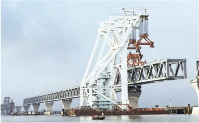 中国中铁大桥局帕德玛大桥项目部在孟加拉国做得同样出色。5月4日,万吨级中心架梁起重船“天一号”将重约3200吨的钢梁架设到帕德玛大桥的指定桥墩上。至此,中国中铁大桥局帕德玛大桥项目部已经完成钢梁架设总任务量的70%以上。