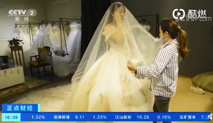 年初的疫情打乱了不少新人的结婚计划,随着全国婚姻登记全部恢复,记者对婚纱租赁、采买市场进行调查。一方面线下客流量锐减,记者走访流转着全国70%的婚纱交易的苏州市姑苏区虎丘婚纱城了解到,3月份复工以来,交易额同比下降了45%,客流量同比下降了50%,不少商家表示,目前销量只恢复到了去年同期的三四成。